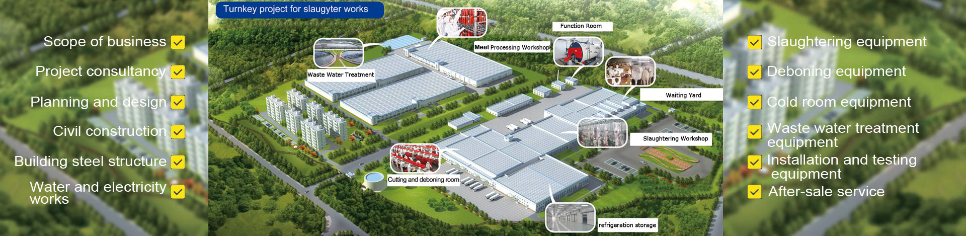 Fornecemos projetos completos de matadouros para suínos, bovinos, ovinos / caprinos e aves domésticas, desde o design até a realidade.
