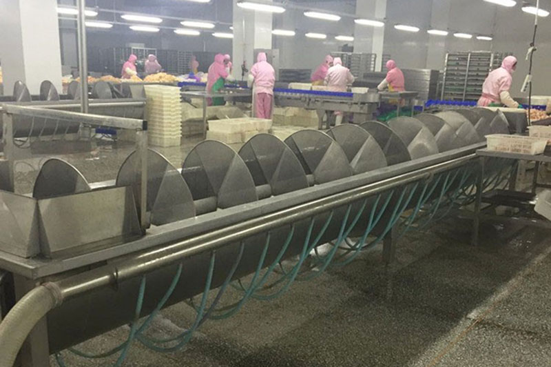O chiller de resfriamento da Jianhua é usada para resfriar frangos e carcaças de pato antes da divisão, a fim de obter desacidificação e desintoxicação. O sistema de propulsão em espiral e o sistema de soprador garantem que o desempenho de refrigeração seja uniforme e completo.