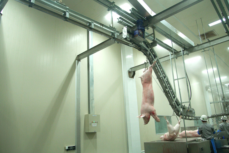 A Jianhua projetou a linha de abate de suínos para atender à capacidade e incluiu um sistema completo de rastreabilidade. A linha de abate de suínos realizaria o envelhecimento e a classificação automática da carne de porco. Isso não apenas minimiza os custos de mão-de-obra, mas também reduz a quantidade de contato humano com a carne de porco, evitando o risco de contaminação cruzada e melhorando a qualidade da carne de porco.